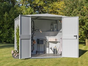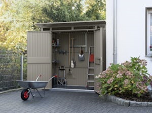 Kombinujte rôzne štýly, farby, veľkosti a vhodné príslušenstvo pre váš dokonalý domček na náradie a chýbajúci úložný priestor alebo neporiadok už budú minulosťou. Nadčasový dizajn a odolné materiály našich záhradných domčekov od spoločnosti Hörmann bez problémov zapadnú do každého štýlu.