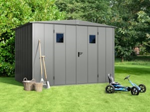 Domček na náradie Berry Modern je dostupný s pultovou strechou alebo sedlovou strechou.