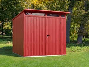 Všetky domčeky na náradie od spoločnosti Hörmann sú vyrobené z kovu. Máme na to dobré dôvody: V porovnaní s dreveným domčekom na náradie sú naše úložné riešenia vyrobené zo žiarovo pozinkovaného, tvarovo stabilného oceľového plechu s práškovou povrchovou úpravou, ktorý im dodáva nasledovné vlastnosti: